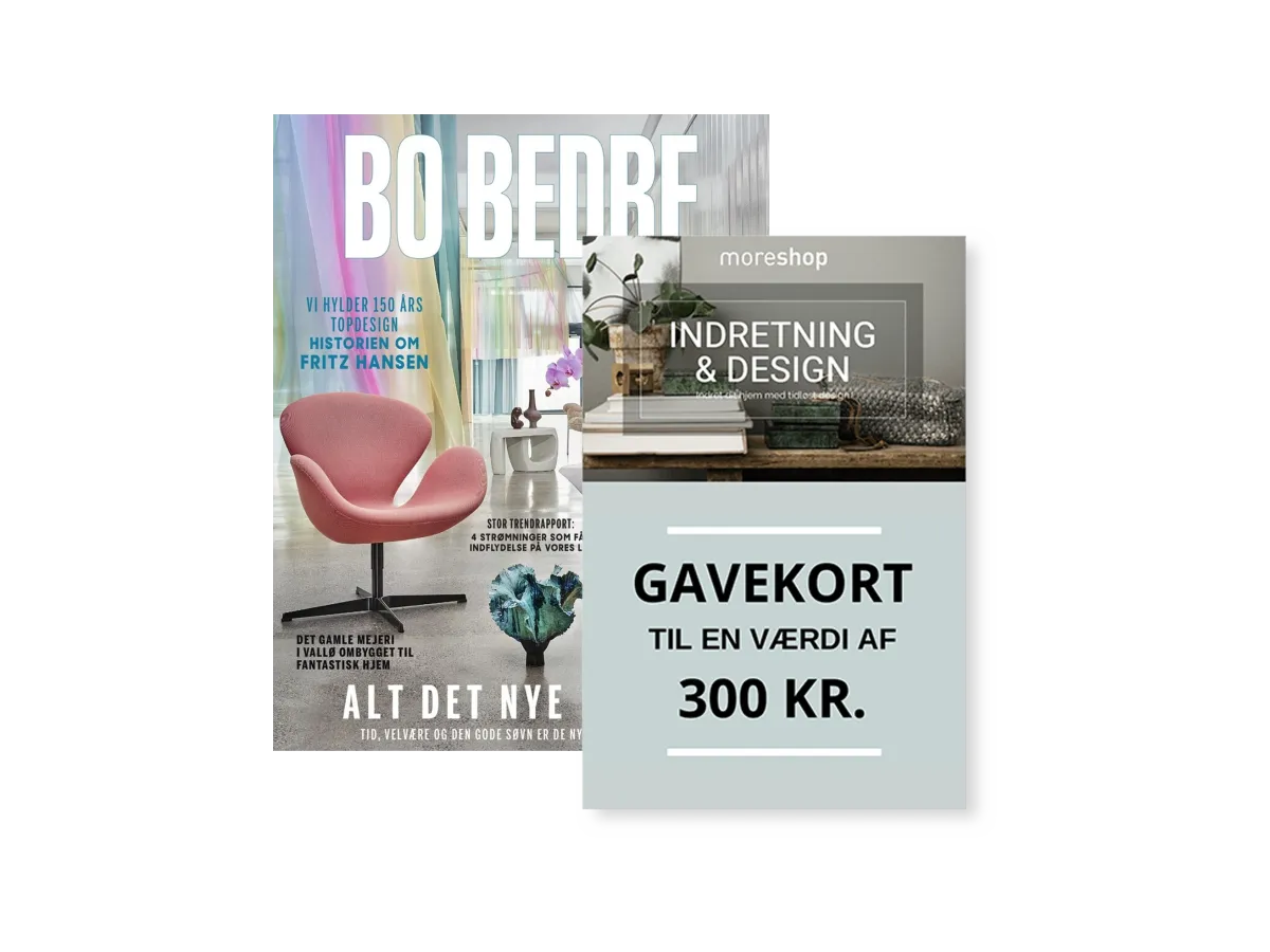 Nu får du 3 numre af BO BEDRE og gavekort til en værdi af 300 kr til fordelsshoppen Moreshop for 99 kr.