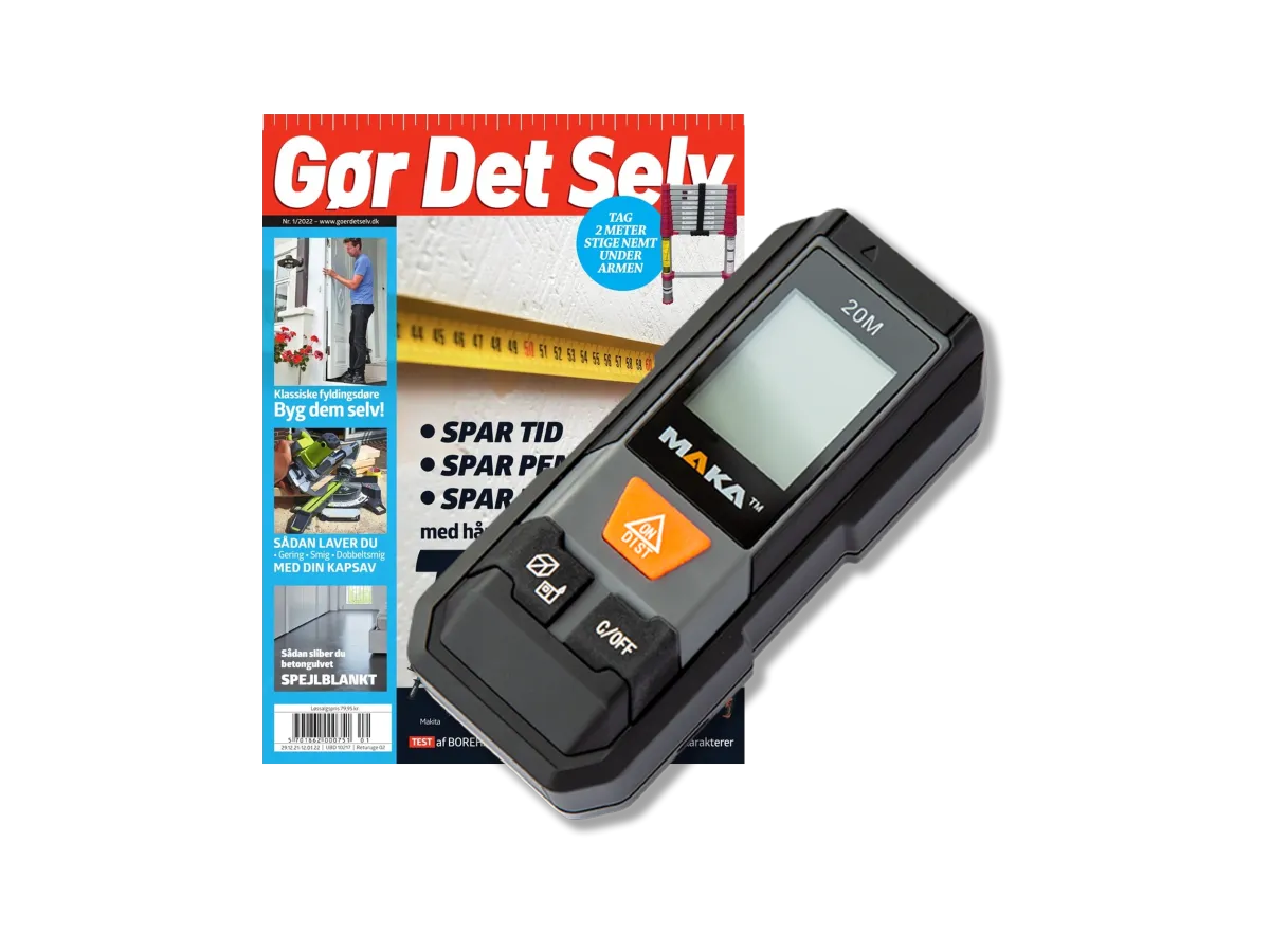 Nu får du 2 numre af Gør Det Selv og afstandsmåler for 129 kr + porto og ekspedition. Lille, smart laserafstandsmåler, du kan have i lommen.