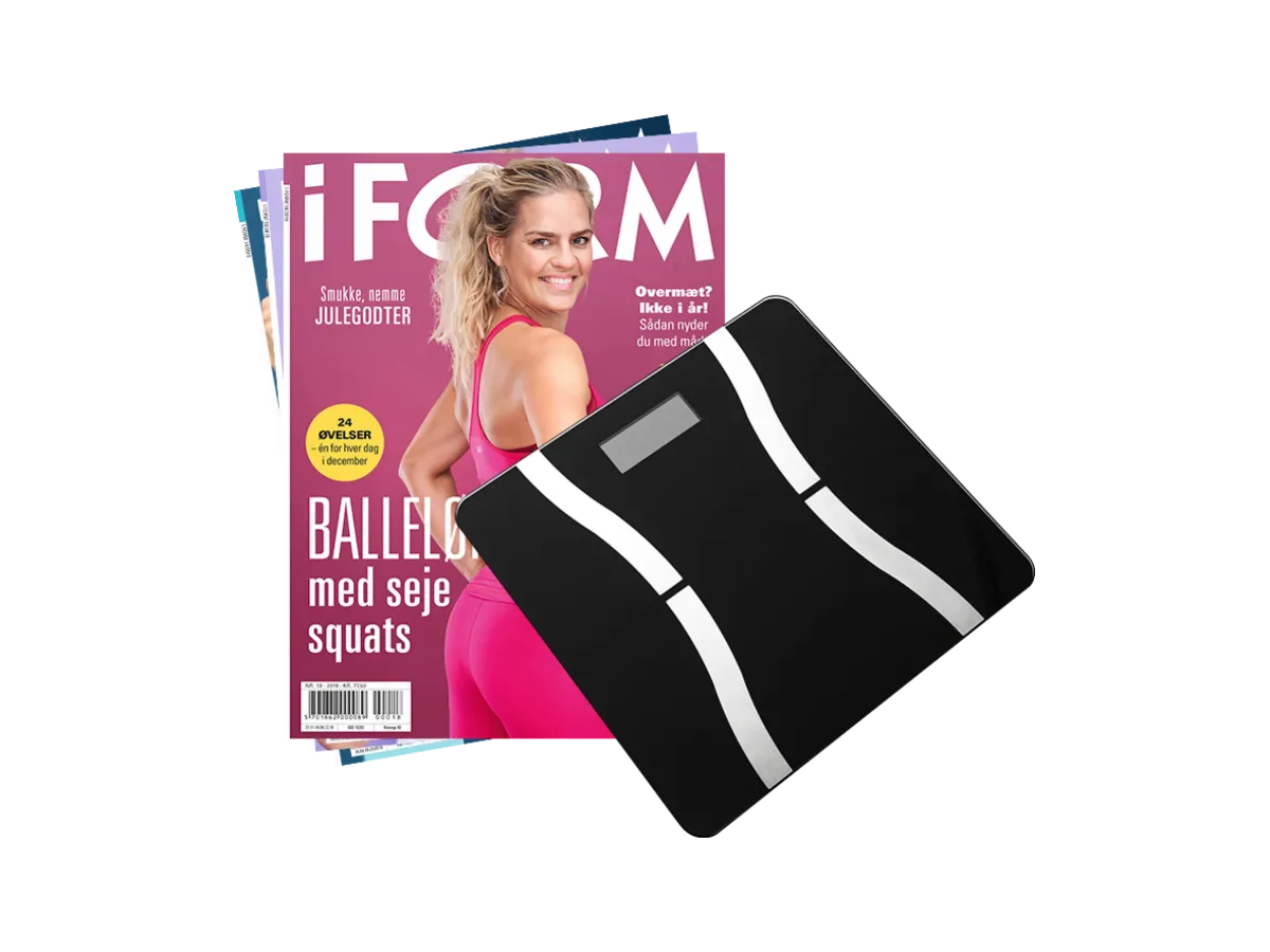 Nu får du 4 numre af I FORM og en badevægt med kropsanalyse for 149 kr + porto og ekspedition.