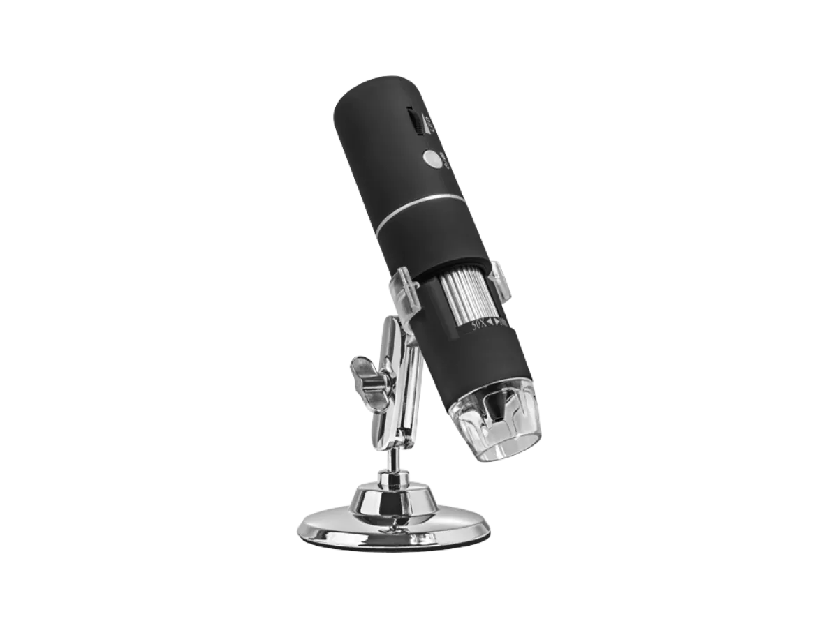 Nu kan du komme helt tæt på insekter, smykker eller din egen hud. WiFi mikroskopet har op til 1000x forstørrelse og 8 LED lysdioder, som lader dig få selv de mindste detaljer med, uanset om du zoomer ind på edderkoppen i hjørnet af stuen eller din frokosttallerken.