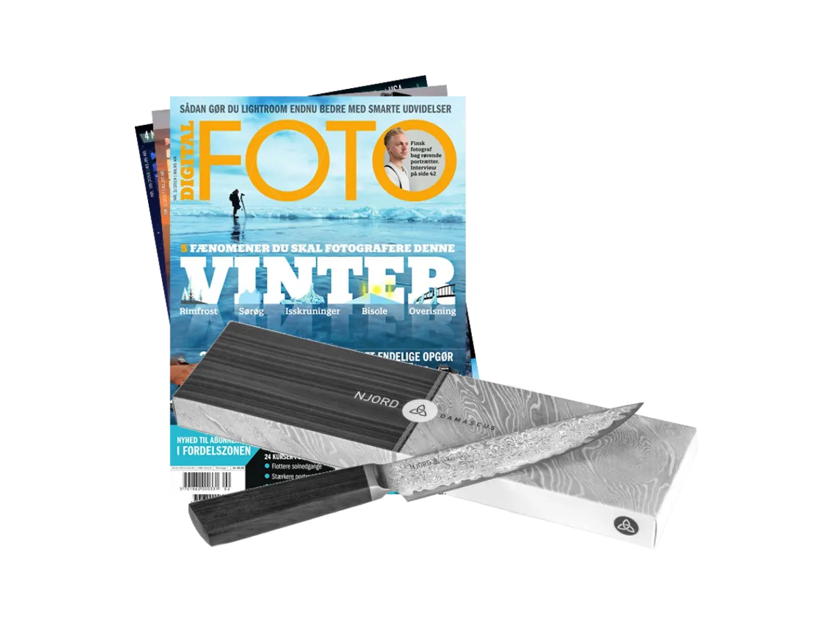 Nu får du 2 numre af Digital FOTO og Damaskus-kniv for 49 kr + porto og ekspedition.