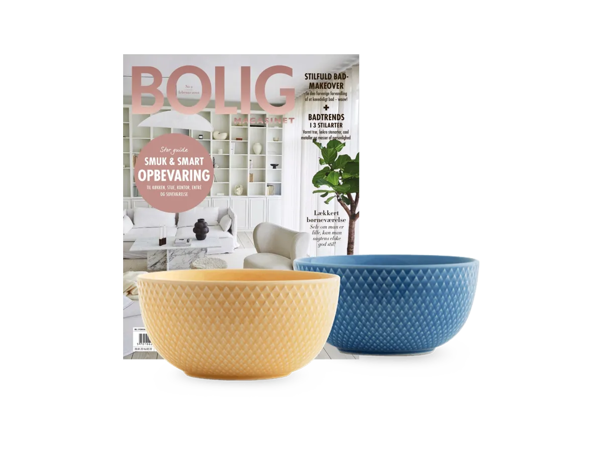 Nu får du 3 numre af Bolig Magasinet og Lyngby Porcelæn Rhombe skåle for 228 kr, inklusive levering.