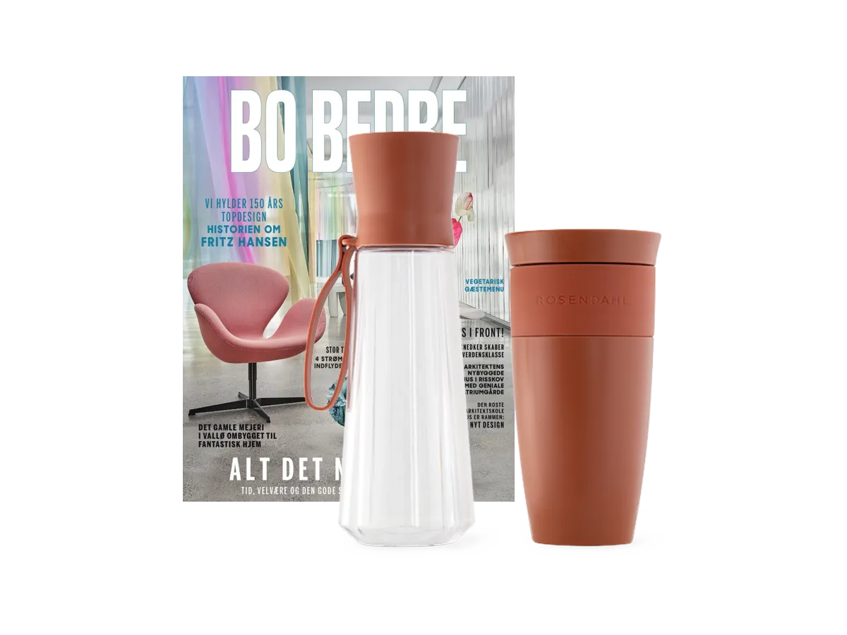 Nu får du 3 numre af BO BEDRE og Rosendahl To Go kop og drikkeflaske for 129 kr + porto og ekspedition.